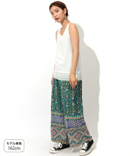 ◆商品について◆ レイヤードコーデが楽しめる、裾のキカ柄レースがポイントのタンクトップ。